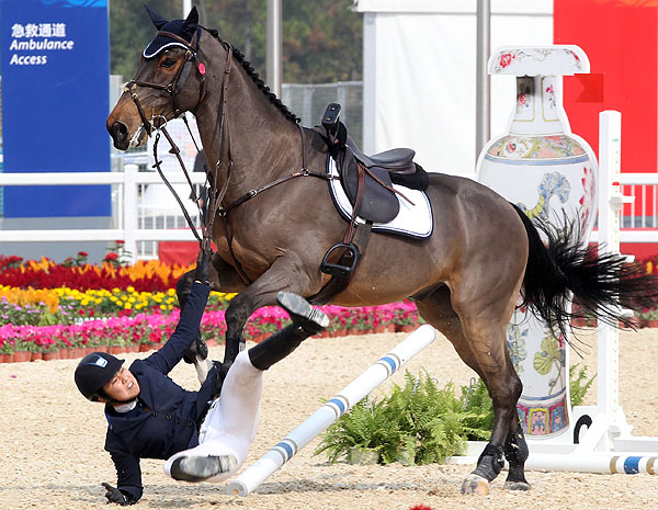 [포토]광저우 아시안게임, 낙마하는 대만선수