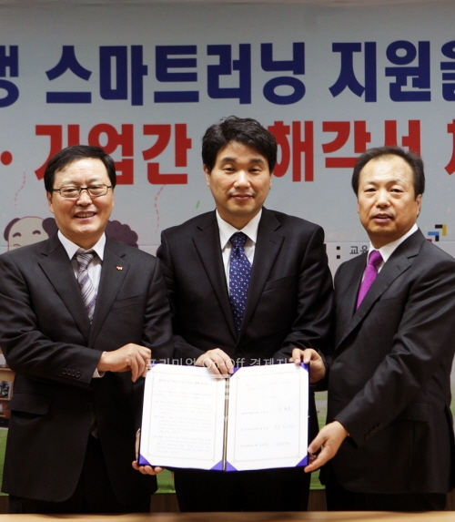 이날 오전 세종로 정부종합청사에서 열린 협약식에서 이주호 교육과학기술부 장관, 정만원 SK텔레콤 사장, 신종균 삼성전자 사장 등 참석자들은 학습에 많은 어려움을 겪고 있는 많은 장애학생들에게 충분한 학습기회를 제공하기 위해 상호 노력을 지속한다는데 의견을 모았다.