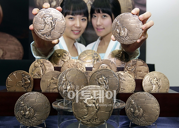 2011년 신묘년 토끼의 해를 기념하기 위해 한국조폐공사가 토끼모습을 담은 캘린더 메달 2000장을 한정수량 발행해, 30일 오전 (주)화동양행 본사에서 기념행사를 하고 있다.