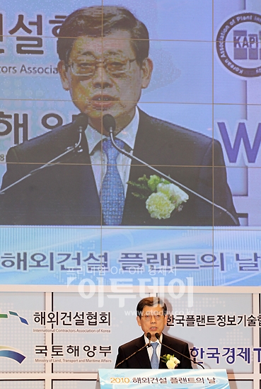 김황식 국무총리가 7일 오후 서울 논현동 건설회관 대강당에서 열린‘2010 해외건설 플랜트의 날’기념식에 참석해 치사를 하고 있다.