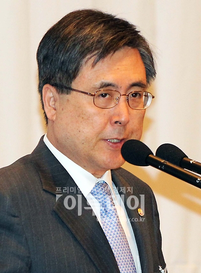진동수 금융위원회 위원장이 16일 오후 서울 중구 태평로 프레스센터 국제회의실에서 열린 ‘미소금융 출범 1주년기념식’에 참석해 축사를 하고 있다.