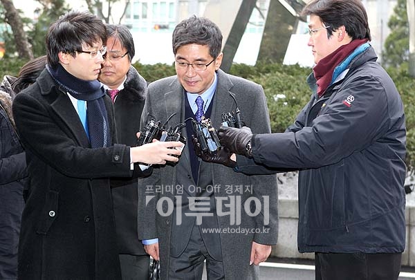 이호진 태광그룹 회장이 4일 오전 태광그룹의 비자금 의혹으로 서울서부지검에 소환돼 취재진의 질문을 받고 있다.