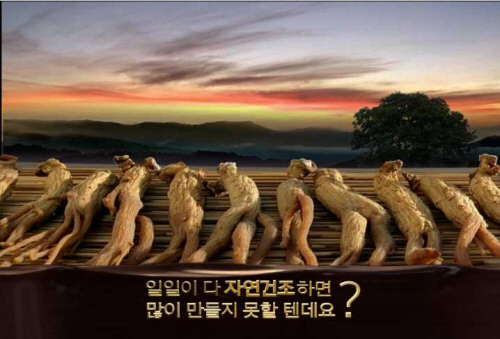 실제 기계 건조를 하면 많은 양을 짧은 시간 내에 건조할 수 있지만, ‘동원 천지인 홍삼’은 삼(蔘) 하나하나를 적정 태양광이 조절되고 바람 길이 잘 통하는 건조장에서 자연 건조한다는 내용이 주를 이뤘다.