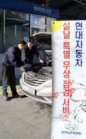 ▲현대차는 17부터 다음달 6일까지 고객들의 안전한 설날 귀성길을 위해 전국 1500 여 곳의 A/S네트워크를 활용해'설날 특별점검 서비스'를 실시한다.