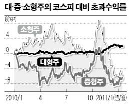 일부 언론이나 증권사가 개인들이 선호하는 중소형주가 강세 시장이 왔다고 호들갑을 떨었지만 아직 중소형주 수익률이 시장(코스피)수익률 보다 저조하다. 특히 대형주 주도주 장세 속에 종목 간 차별화가 극심해지면서 개인들이 수익을 내기는 만만치 않은 시장이다.