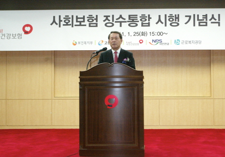 국민건강보험공단은 25일 서울 마포에 위치한 본사 대강당에서 '사회보험 징수통합 제도 시행' 기념행사를 개최했다.