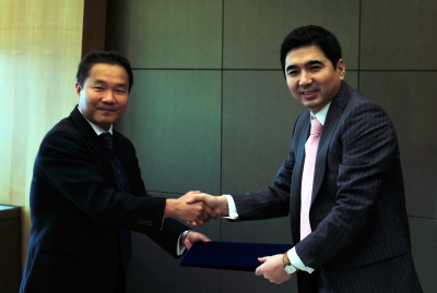 ▲이형승 IBK투자증권 대표이사(오른쪽)가 지난 26일 서울 여의도 본사에서 ANG KAY TIONG Stirling Coleman 대표이사(왼쪽)와 양사간 전략적 업무제휴에 관한 양해각서(MOU)를 체결한 뒤 악수를 나누고 있다.