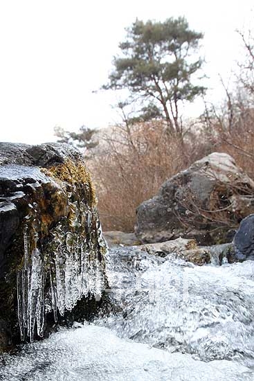 평년 기온을 회복한 날씨가 이어지고 있는 5일 오전 경남 밀양시 산외면 시냇물에는 바위에 얼어붙었던 얼음이 녹아 졸졸졸 흐르고 있다.