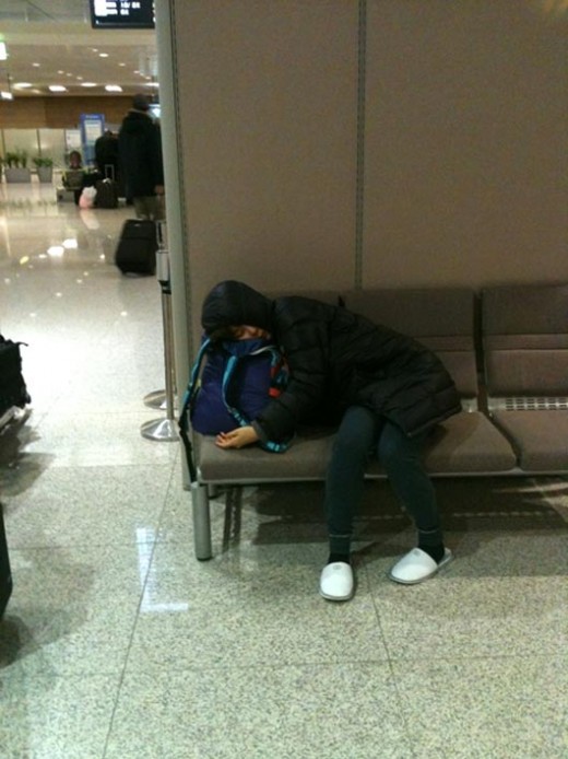 지난 달 31일 김나영은 트위터에 "오늘 새벽 인천공항에 나타난 공항패션 종결자, 잠시 지쳐 휴식 중이네요"라는 글과 함께 사진 한 장을 게재했다.