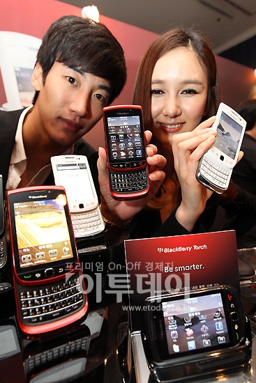 리서치 인 모션(RIM)과 SK텔레콤은 9일 오전 밀레니엄 서울힐튼에서 BlackBerry Torch및 BlackBerry6 발표회를 열었다. 새로운 모델은 BlackBerry 쿼티(QWERTY) 자판과 풀 터치 스크린 기능이 모두 지원되는 스마트폰으로 수직 슬라이드 형 키보드 디자인을 갖추고 있어 보다 직관적인 타이핑과 사용이 가능한 제품이다. 블랙,레드,화이트 색상으로 2월 중 SK 텔레콤을 통해 구매 가능하다.