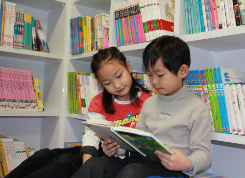 ▲지난해 12월 15일 서울 관악구 미성동 참좋은지역아동센터에 처음으로 문을 연 '신한카드 아름人 도서관'에서 센터 어린이들이 책을 읽고 있다.