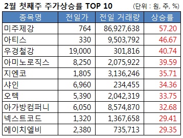 금주 최대 이슈종목은 미주제강 57.20% 급등!