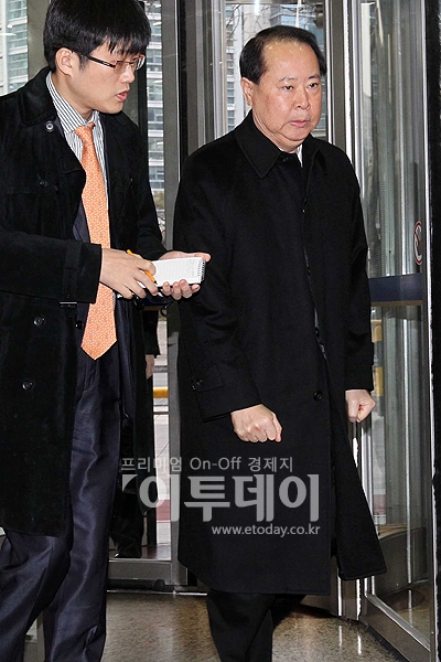 14일 오전 신한금융지주의 차기 회장 선임을 위한 특별위원회에 참석한 김요구 신한금융지주 사외이사가 취재진의 질문을 받으며 태평로 신한은행 본사로 들어서고 있다.