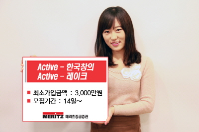 메리츠종금증권(대표이사 최희문)은 14일부터 한국창의투자자문, 레이크투자자문의 투자자문을 받아 운용하는 자문형 랩어카운트인 '메리츠 스마트랩 Active - 한국창의'와 '메리츠 스마트랩 Active - 레이크'를 신규 판매한다고 밝혔다.
