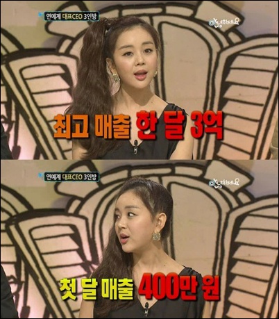 한편 백보람은 “한 달 최고 매출은 3억”이라며 “한창 연예인 쇼핑몰 붐이 일 때 효과를 톡톡히 봤다”고 덧붙였다.