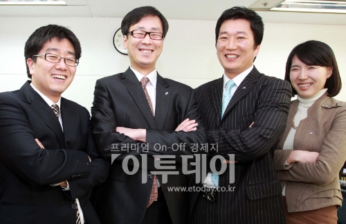사진기자의 주문에 맞춰 하이투자증권 퇴직연금운용팀 직원들은 “화이팅!”을 외쳤다. 조금의 오차도 없었다. 5명의 입에서 하나의 목소리가 났다. 박용주 퇴직연금운용팀장이 “부서운영에서 가장 중요한 것은 팀워크”라고 굳이 얘기할 필요도 없었다.