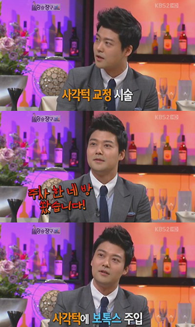 지난 8일 방송된 KBS 2TV ‘승승장구’에 출연한 전현무는 향간에 떠도는 성형수술 의혹과 관련 “사각턱 교정 수술이 아닌 시술을 받았다”며 “중독은 안 좋지만 적당한 시술은 고래도 춤추게 한다”고 말했다.