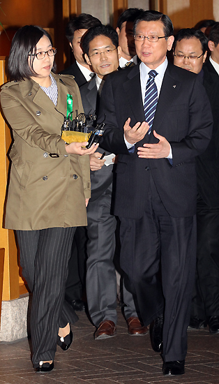 박삼구 금호아시아나그룹 회장이 10일 오후 서울 용산구 한남동 그랜드하얏트 서울호텔에서 허창수 회장 취임 이후 처음으로 열린 전국경제인연합회 회장단 회의에 참석하기 위해 들어서고 있다.