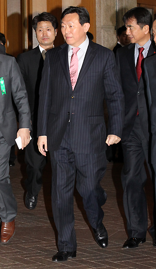 신동빈 롯데그룹 회장이 10일 오후 서울 용산구 한남동 그랜드하얏트 서울호텔에서 허창수 회장 취임 이후 처음으로 열린 전국경제인연합회 회장단 회의에 참석하기 위해 들어서고 있다.