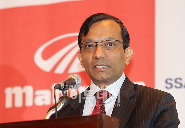 코엔카 마힌드라그룹 사장이 15일 오전 서울 강남구 역삼동 르네상스 서울호텔에서 열린 ‘마힌드라·쌍용자동차 공동 기자회견’에 참석해 인사말을 하고 있다.