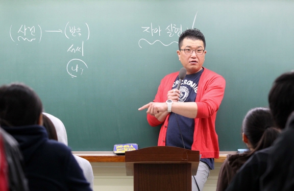 이어 그는 “일반적인 국어수업은 문제 푼 뒤 틀린문제에 대해 풀이·해설해 주는 ‘뒷북수업’이었다면, 내 수업은 스스로 분석할 수 있게 틀을 알려준 뒤 틀리지 않도록 훈련하는 것이 가장 큰 특징이다”며 “주입식 교육을 한 학생의 경우 수능시험 때 낯선 작품들이 나오면 당황하고 풀이가 막히지만 내 수업을 듣는 학생은 낯선 작품이 나와도 스스로 분석이 가능하고 작자가 의도하는 바를 쉽게 찾아낼 수 있다”고 했다.