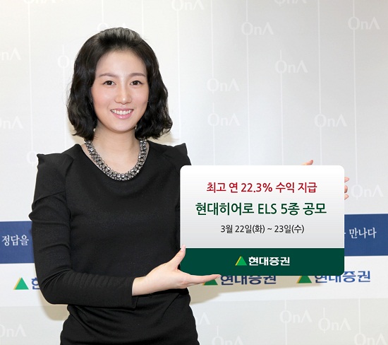 현대증권은 오는 22일부터 23일까지 이틀간 원금보장형 ELS 2종, 원금비보장형 ELS 3종 등 총 5종의 상품을 약 250억원 규모로 공모한다고 밝혔다.