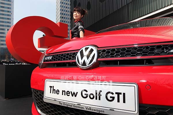 폭스바겐코리아가 27일 오전 상암 E&M센터에서 고성능 핫 해치의 아이콘이라 불리는 6세대 골프 GTI의 사전 공개 행사를 진행하고 있다. 6세대 골프 GTI는 211마력의 강력한 TSI 엔진과 고성능 혈통을 상징하는 벌집모양 그릴, 바이제논 헤드라이트와 LED 테일라이트 등이 적용되었다. 국내 판매 가격은 4,390만원(VAT 포함) 이다.