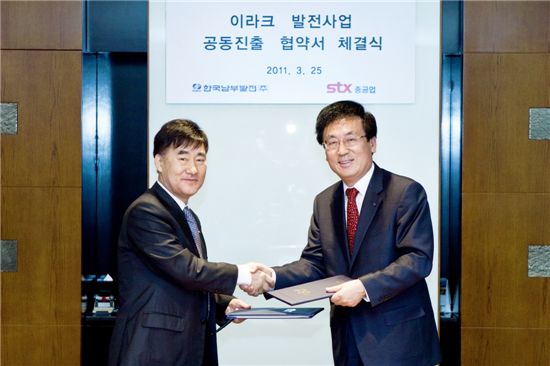 이번 MOU 체결을 통해 양사는 향후 이라크 지역에서의 발전설비 수주 활동을 공동으로 진행하며 STX중공업은 설계 및 기자재 조달, 시공을 담당하고, 남부발전은 발전소 운영 및 유지관리 업무를 맡는다.