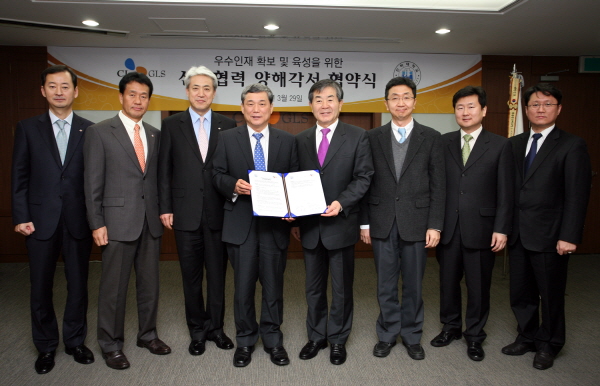 글로벌 물류혁신리더 CJ GLS(대표이사 이재국)와 인하대학교가 물류전문인력 육성 및 채용을 위한 산학협력 MOU를 체결했다. 29일 CJ GLS 본사 대회의실에서 진행된 MOU 체결식에서 참석자들이 양해각서 교환 후 기념촬영을 하고 있다.