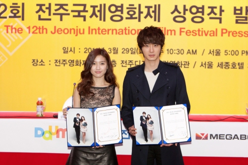 배우 김소은과 정일우가 29일 오후 서울 중구 세종호텔에서 제12회 전주국제영화제 홍보대사로 위촉돼 포즈를 취하고 있다.