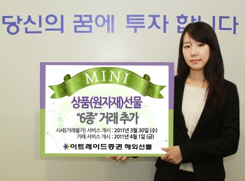 이트레이드증권 해외선물팀 이종호 팀장은 “당사의 해외 MINI 상품선물 거래서비스로 인하여 고객들은 적은 증거금으로도 상품(원자재)선물을 투자가 가능하게 됐다”고 설명했다.