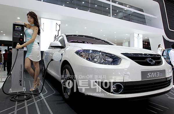 2011 서울 모터쇼가 31일 프레스데이를 시작으로 다음달 1일부터 10일까지 고양시 킨텍스에서 화려한 막을 연다. 31일 르노삼성자동차 부스에서 모델이 100% 전기차 ‘SM3 Z.E’를 소개하고 있다.국내 최대 모터쇼인 2011 서울 모터쇼에는 전세계 35개의 완성차 업체와 모두 8개국 139개 자동차 기업이 참여해 신차들과 신기술의 대전을 펼친다.