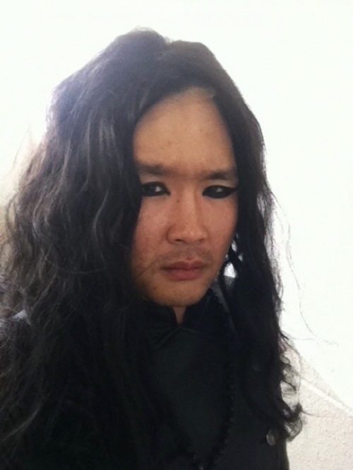 사진 속 윤형빈은 눈밑에 과장된 스모키 화장을하고 긴 곱슬머리를 하고 있어 흡사 록밴드의 멤버같은 모습을 하고 있다.