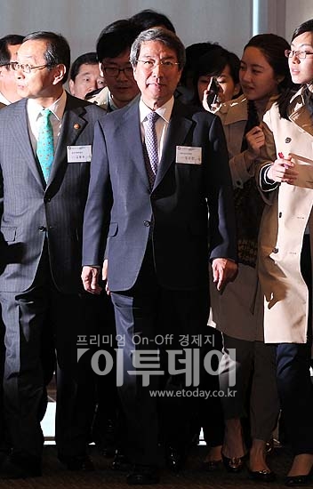 초과이익공유제로 논란을 빚었던 정운찬 동반성장위원장이 13일 오전 서초동 삼성전자 사옥에서 열린 삼성그룹·협력사 공정거래 및 동반성장 협약식에 참석하고 있다.