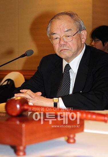 서남표 카이스트 총장이 15일 오전 서울 서초구 반포동 JW메리어트 호텔에서 열린 카이스트 임시 이사회에 생각에 잠긴 표정으로 앉아있다.