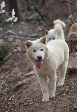 공개된 사진에는 그의 애견 중 하나인 하얀색 털을 가진 백통이의 모습이 담겨있다.