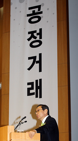 김동수 공정위 위원장이 18일 오전 서울 서초동 R&D 캠퍼스에서 열린 ‘LG 공정거래 및 동반성장 협약식’에 참석해 축사를 하고 있다.
