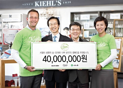 이번 후원금은 2010년 키엘의 베스트셀러 수분크림 ‘울트라 훼이셜 크림 점보 사이즈’의 판매 수익금 중 일부로 우리나라의 소중한 자연 문화 유산인 숲을 지키는 NGO단체 ‘생명의 숲’을 통해 향후 1년 동안 전국에 있는 네 그루의 오래된 나무를 지키고 보호하는 곳에 사용될 예정이다.