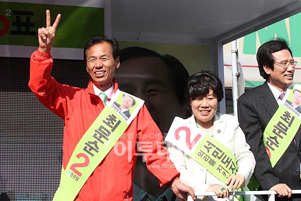 [포토]유권자들에게 지지호소하는 최문순 후보