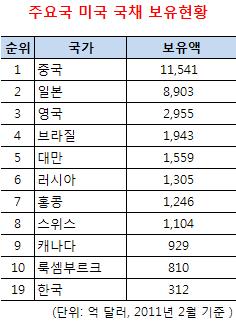 한편 미국도 중국이 자국의 국채를 대량으로 보유하고 있는 상황이 달가운 것은 아니다.