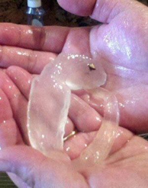 하지만 이에 대해 누리꾼들은 “성형외과에서 쓰는 실리콘이다”, “마치 살아있는 생명체처럼 보이기 위해 거짓으로 눈 부분을 만들어 붙인 것 같다"고 주장하는 반면 “사진 속 투명생명체는 우리가 지금껏 밝히지 못했던 미확인 생물체일 수도 있다"는 의견도 적지 않다.