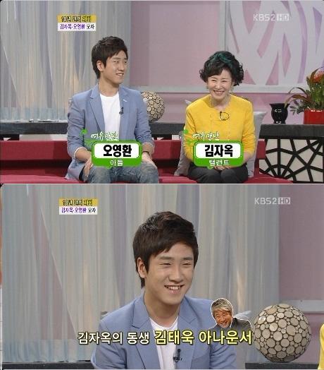 25일 방송된 KBS 2TV ‘황수경, 오언종, 조영구의 여유만만’에 출연한 김자옥은 아들 오영환군과 함께 출연했다.
