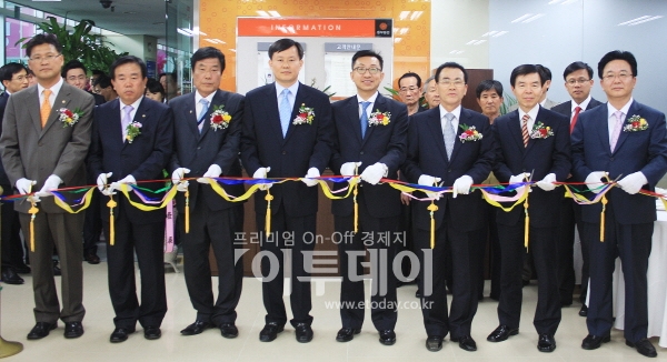 ▲왼쪽부터 서배수 전략점포본부장, 한상운 조치원신협 이사장, 박명종 충남 연기군 산림조합장, 임재은 세종지점장, 고원종 동부증권 사장, 유한식 충남 연기군수, 김진완 감사, 최은창 리테일사업부장