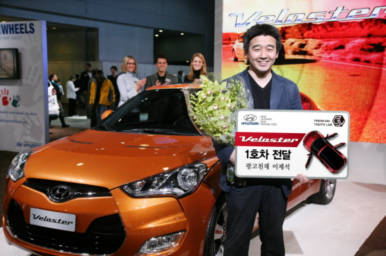 현대차는 이날 뉴욕 제이콥 제이비츠 컨벤션 센터(Jacob Javits Convention Center)에서 열리고 있는 '2011 뉴욕 국제 오토쇼' 현대차 부스로 이제석씨(29)를 초청, 1호차를 전달했다.