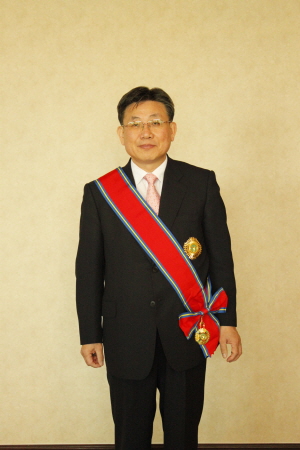 ▲캄보디아 정부로부터 '대십자 훈장'을 수여받은 극동건설 송인회 회장.