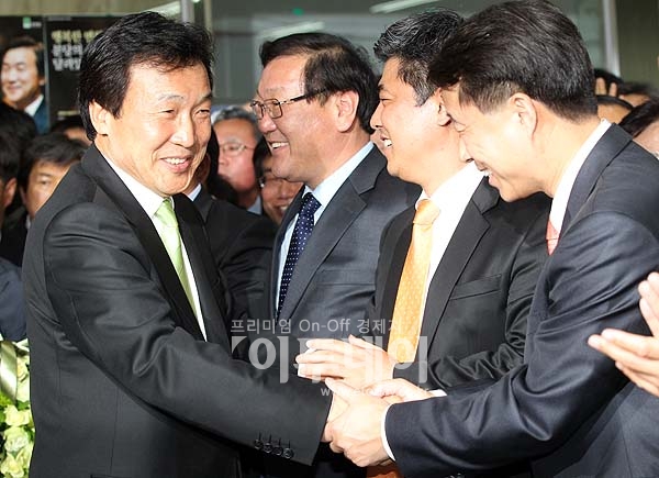 4.27 재보선 분당을에 당선된 민주당 손학규 후보가 27일 오후 당선이 확정된 후 분당 선거사무소에서 지지자들과 밝게 웃으며 인사하고 있다.