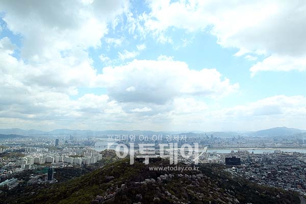 황사가 물러나고 시원한 봄바람이 불고 있는 28일 오후 남산 N서울타워에서 바라본 서울 하늘이 모처럼 청명하다.