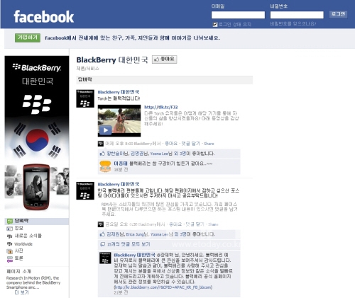▲리서치인모션 블랙베리스마트폰 페이스북 팬페이지