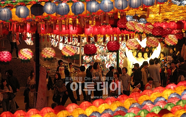 부처님 오신날을 이틀 앞둔 8일 오후 서울 종로구 견지동 조계사에 설치된 형형색색의 연등들이 아름다운 풍경을 자아내고 있다.