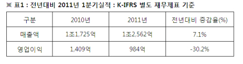 매출액은 1조 1725억원에서 1조2562억원으로 7.1% 증가했다.